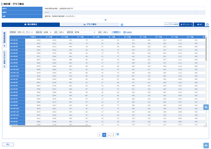 3.【表示を更新】または【設定して表示を更新】ボタンをクリックすると、統計表が更新されます。